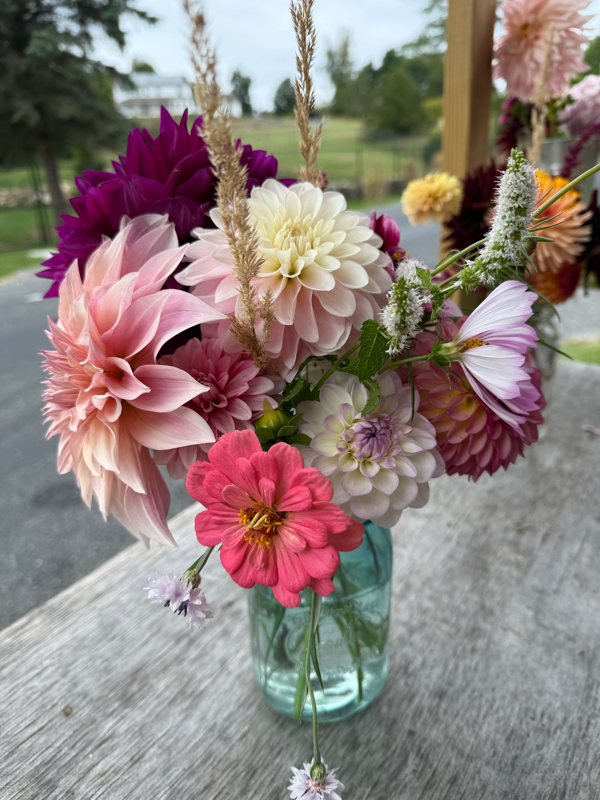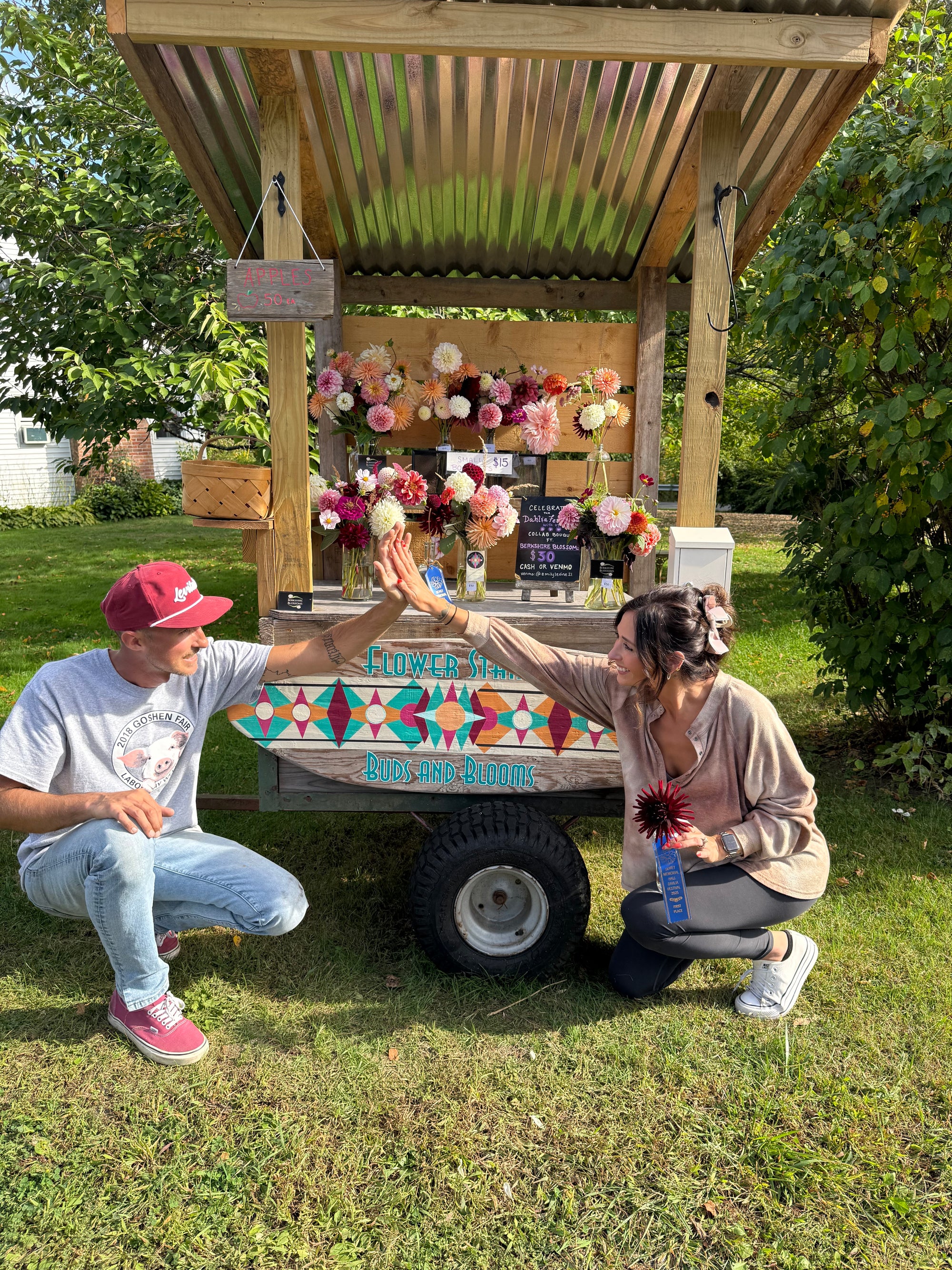 A seasonal roadside flower stand with award winning dahlia arrangements